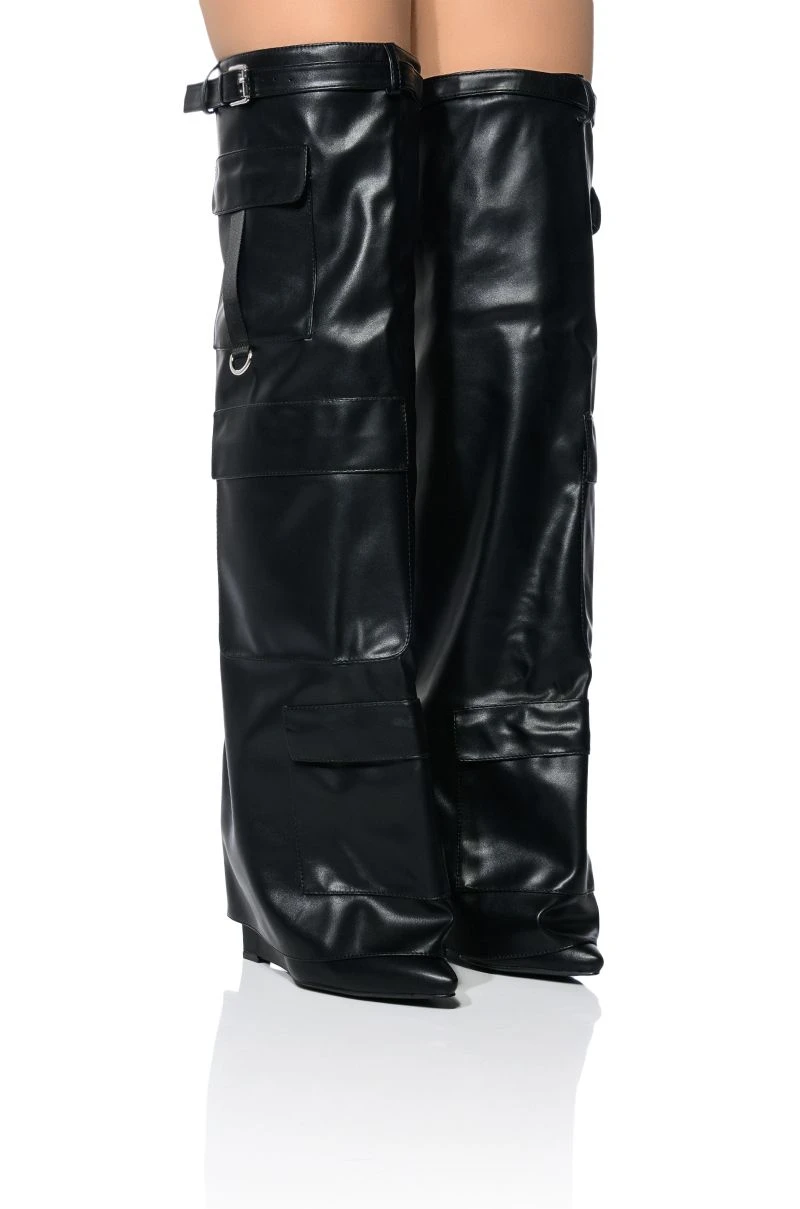 PLUS AZALEA WANG STAR STRETCH CHUNKY HEEL PANT BOOT IN BLACK