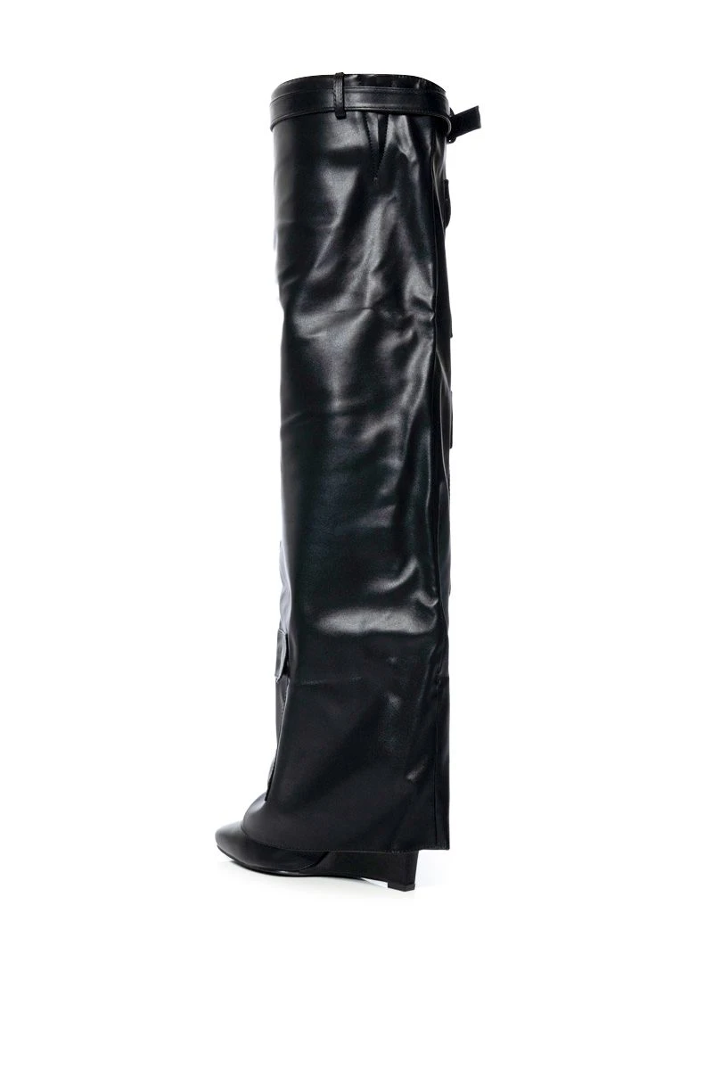 **SLIM FIT** AZALEA WANG LATE NIGHTS FITTED OVER THE KNEE FLATFORM BOOT WITH 4 WAY STRETCH