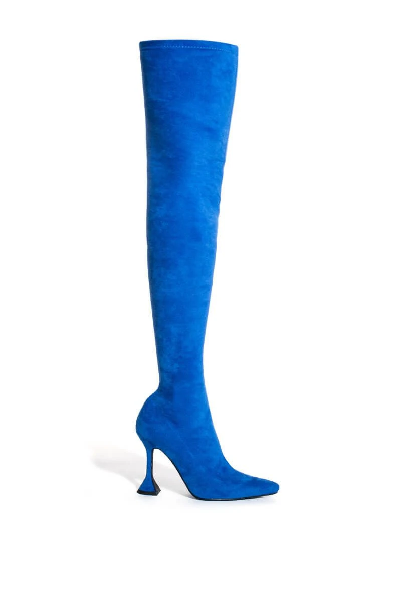 AZALEA WANG ROXY RHINESTONE THIGH HIGH STILETTO BOOT IN NUDE