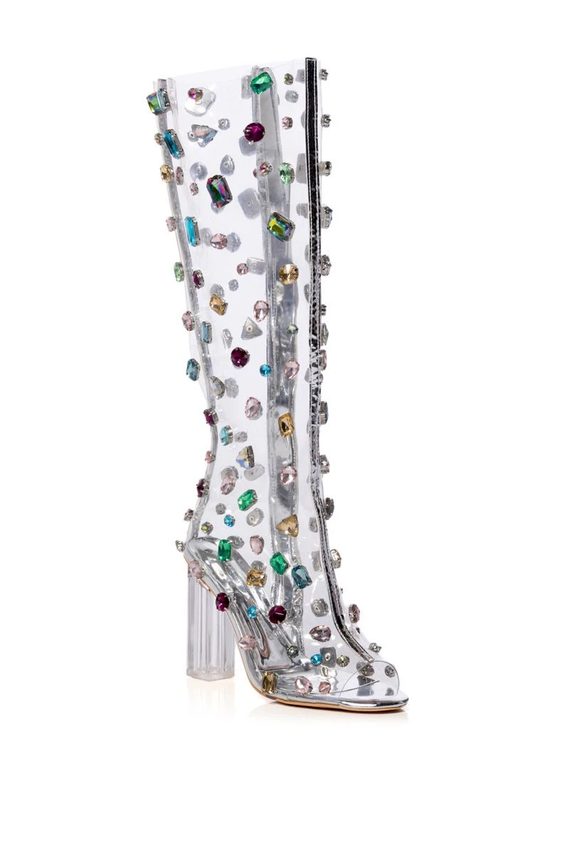 AZALEA WANG FREYA STAR STUDDED IRIDESCENT WESTERN BOOT IN PURPLE