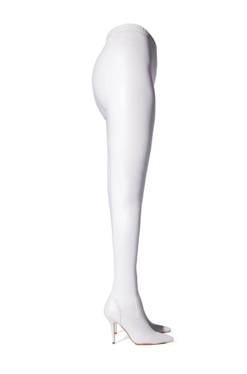 AZALEA WANG ULTRA STRETCH SEQUIN THIGH HIGH STILETTO BOOT IN BLUE