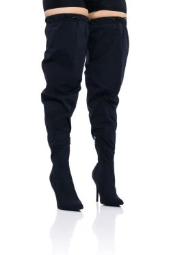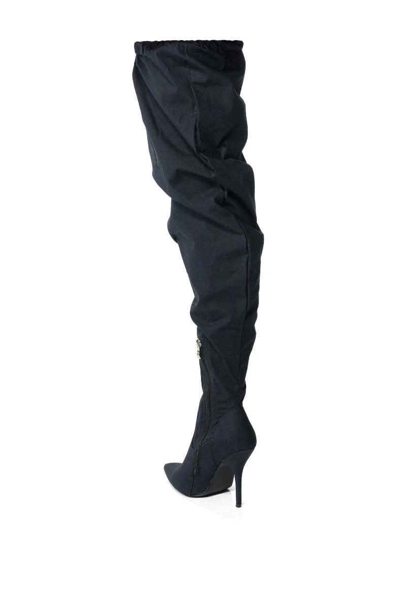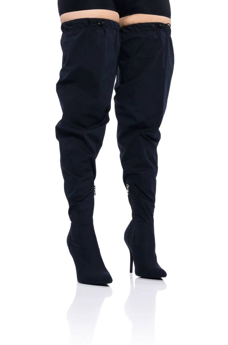 **SLIM FIT** AZALEA WANG LATE NIGHTS FITTED OVER THE KNEE FLATFORM BOOT WITH 4 WAY STRETCH