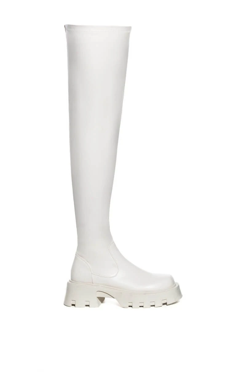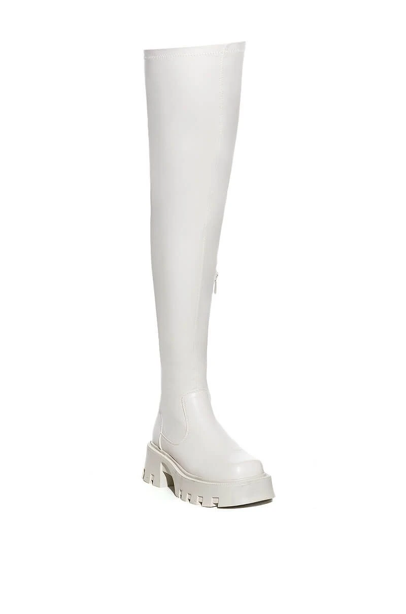 **SLIM FIT** AZALEA WANG LATE NIGHTS FITTED OVER THE KNEE FLATFORM BOOT WITH 4 WAY STRETCH