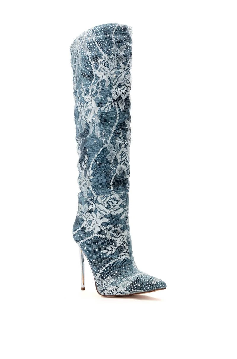 AZALEA WANG FREYA STAR STUDDED IRIDESCENT WESTERN BOOT IN PURPLE