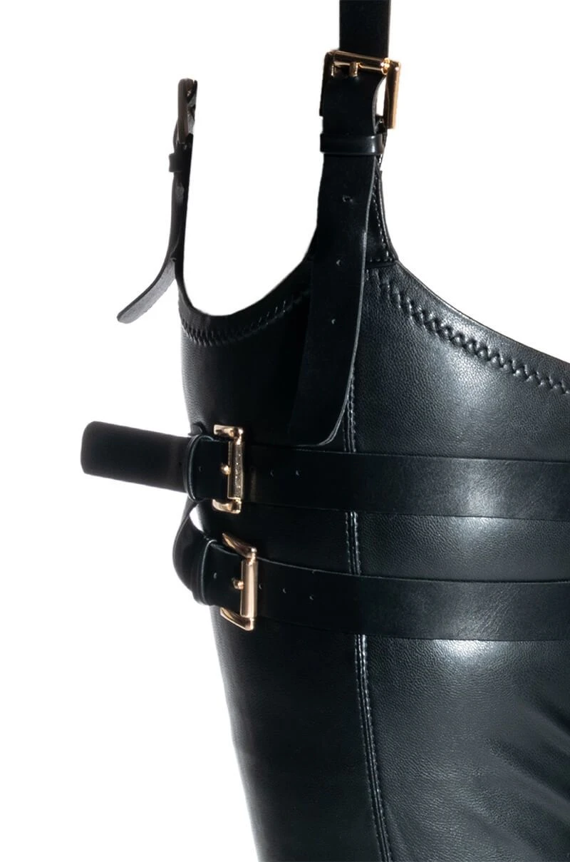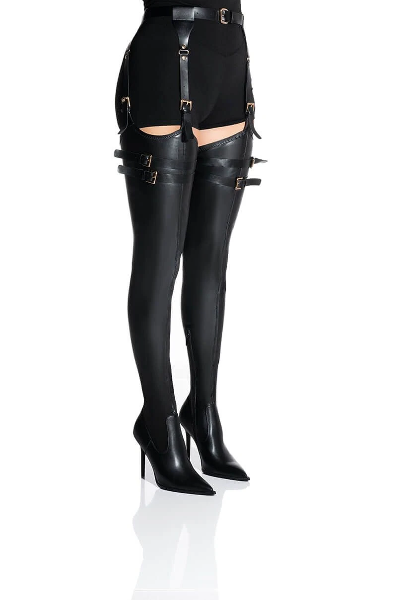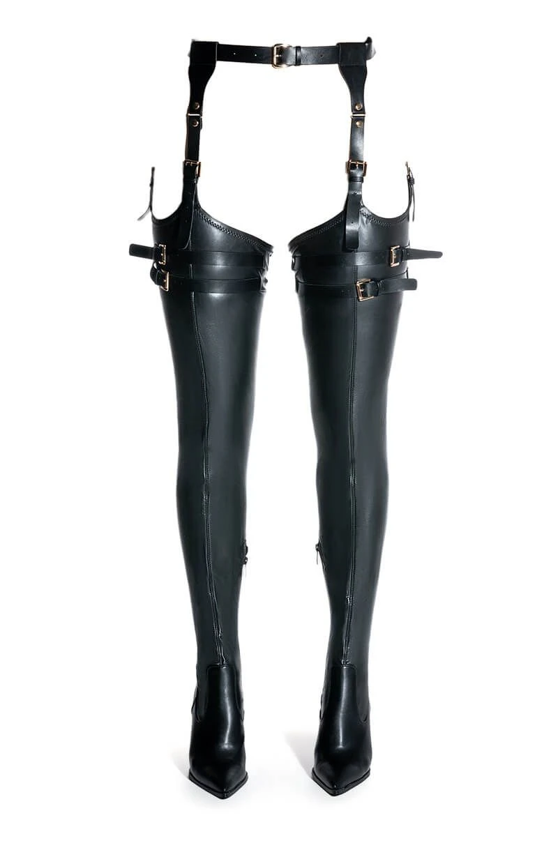 AZALEA WANG ROXY RHINESTONE THIGH HIGH STILETTO BOOT IN NUDE