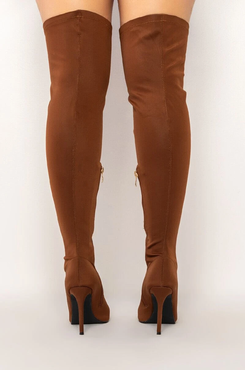 **SLIM FIT** AZALEA WANG LATE NIGHTS FITTED OVER THE KNEE FLATFORM BOOT WITH 4 WAY STRETCH