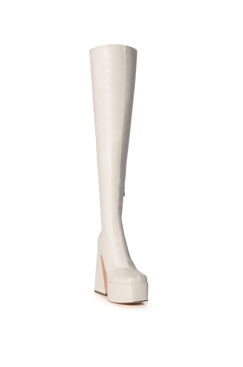 **SLIM FIT** AZALEA WANG LATE NIGHTS FITTED OVER THE KNEE FLATFORM BOOT WITH 4 WAY STRETCH