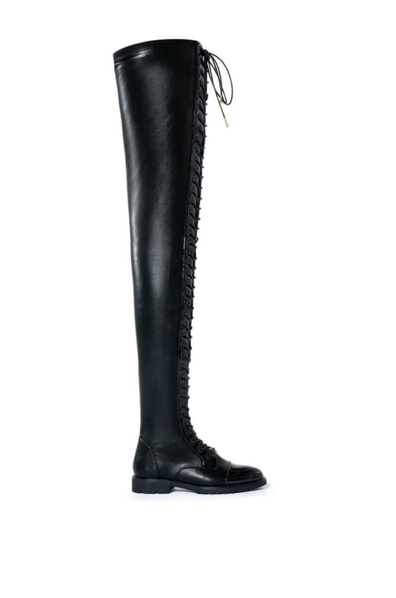 PLUS AZALEA WANG STAR STRETCH CHUNKY HEEL PANT BOOT IN BLACK