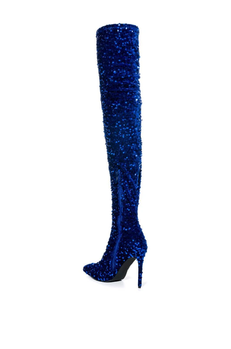 AZALEA WANG ROXY RHINESTONE THIGH HIGH STILETTO BOOT IN NUDE