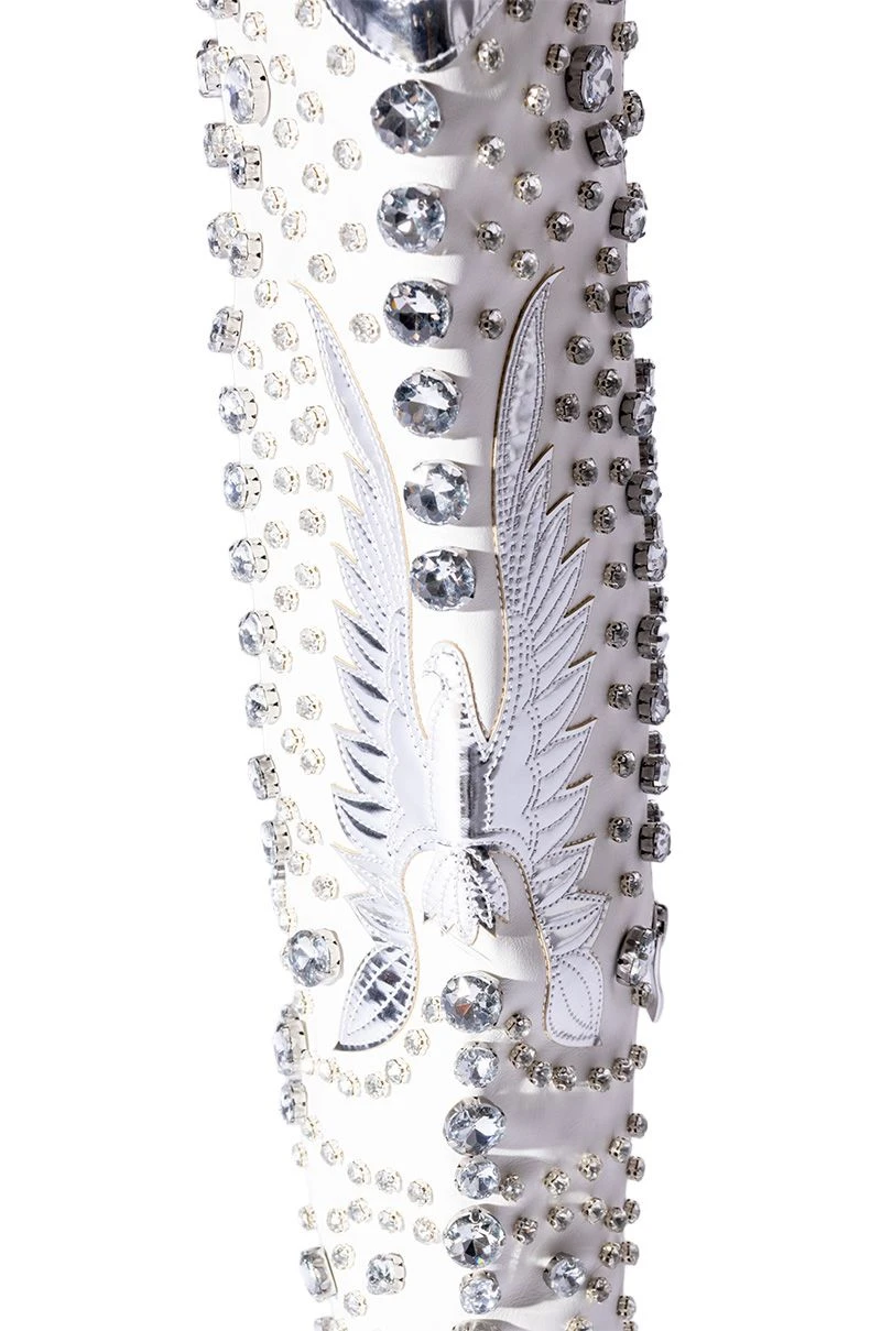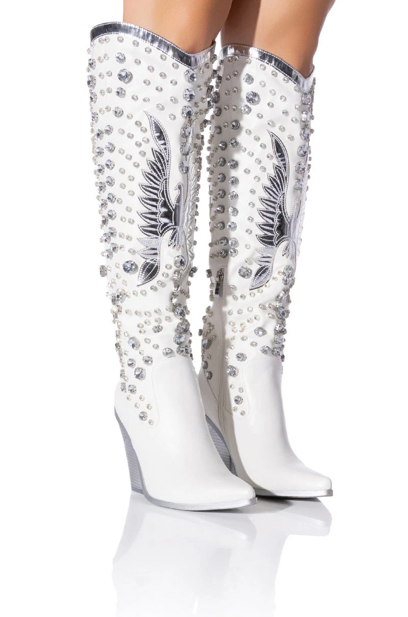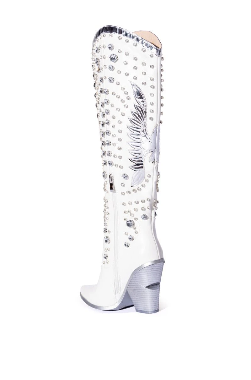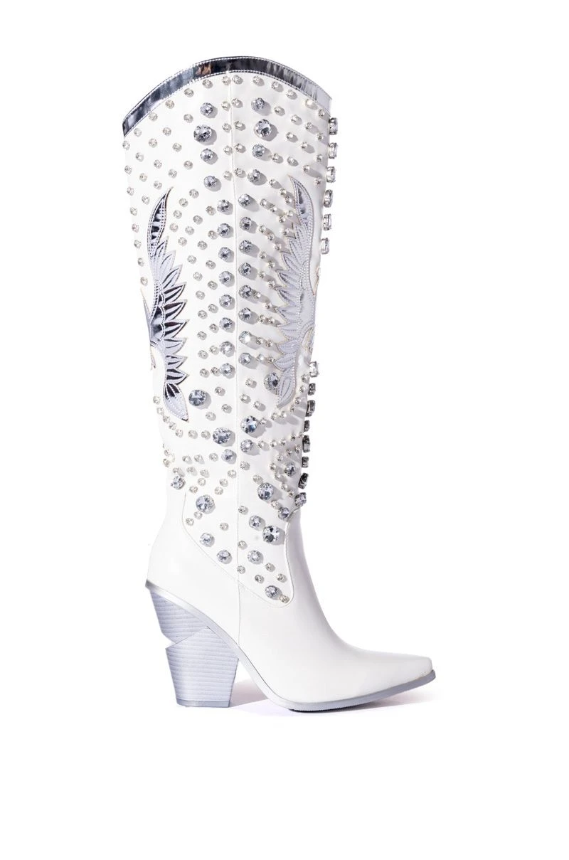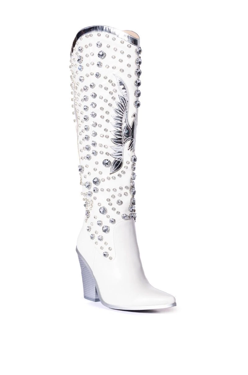 AZALEA WANG CLASSY RHINESTONE ENCRUSTED STILETTO BOOT IN SILVER