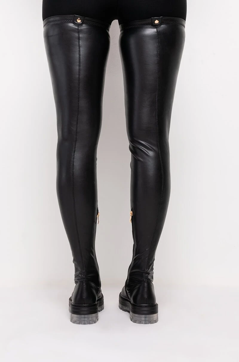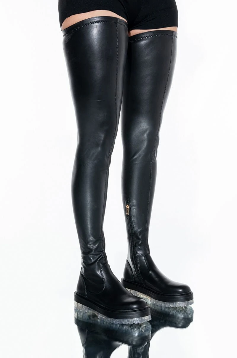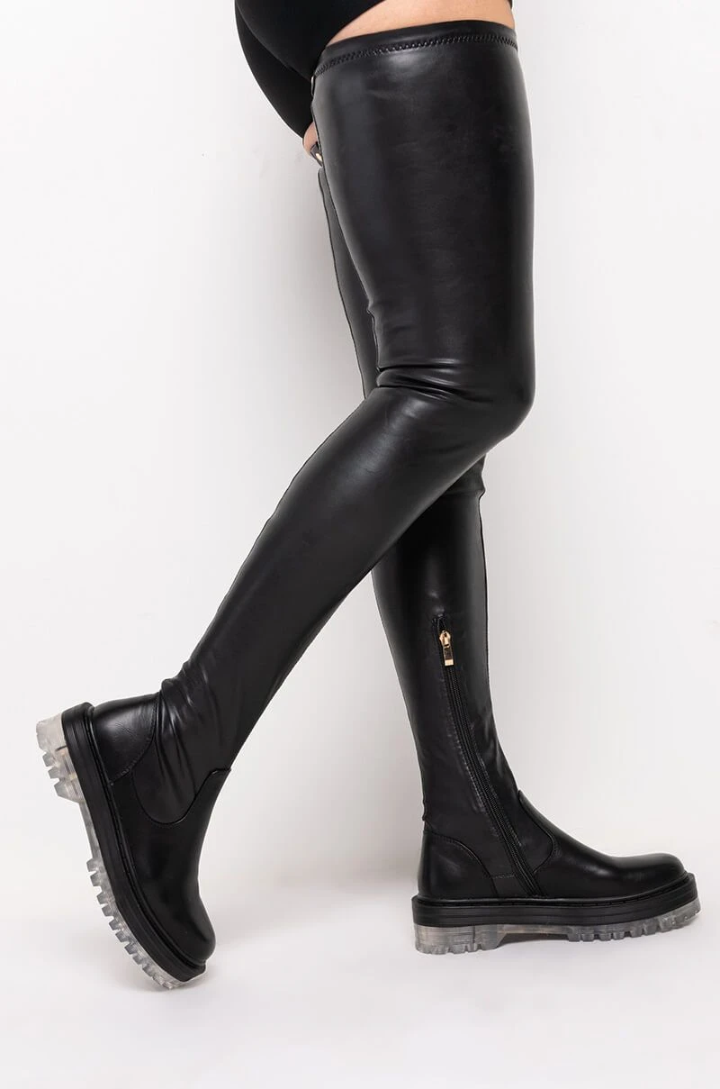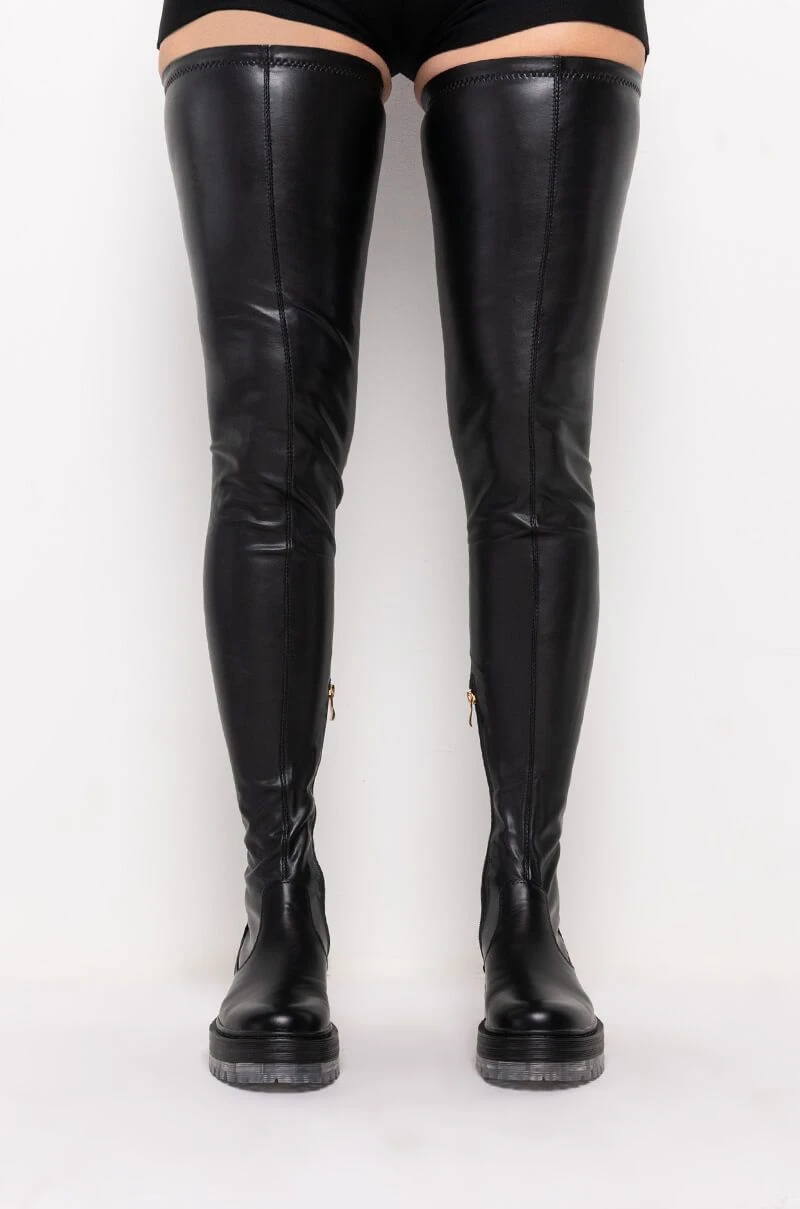 READY TO MINGLE OVER THE KNEE PU CHUNKY PLATFORM BOOT IN CREAM