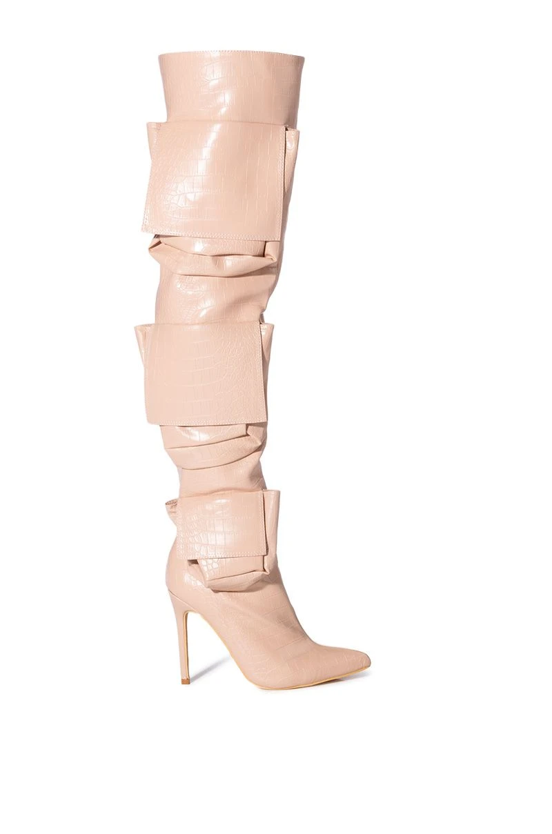 AZALEA WANG CLASSY RHINESTONE ENCRUSTED STILETTO BOOT IN SILVER